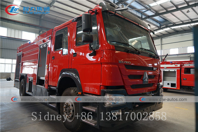 1) HOWO 4X2 fire fighting truck is composed with truck body and cabin,cabin is two rows,which can allow 6 persons.The front part of truck body is equipment room,middle is water tank and foam tank,rear is pump room.